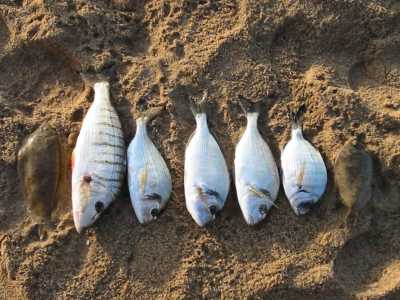 Che strano avevano iniziato a mangiare alle cinque. Preso da un eccitazione incontrollabile cambiai nuovamente le esche e nel giro di 10 minuti presi ancora due oratelle, una sul calamaro e l'altra sull'arenicola. Poi ancora due mangiate a vuoto e poi