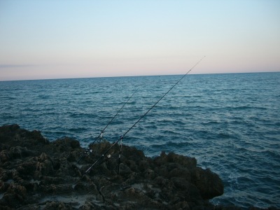Giunge il tramonto e io metto a mare le due canne posandole ognuna sui