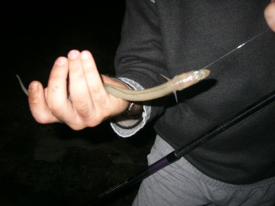 Mio fratello pesca un bell'esemplare di tracina ragno col muriddu che rigettiamo