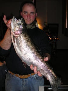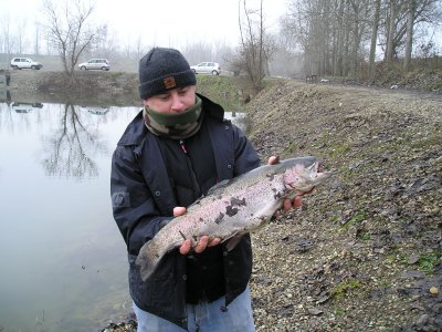 vicino sta già salpando la sua bella trota salmonata da 1,5 kg circa.